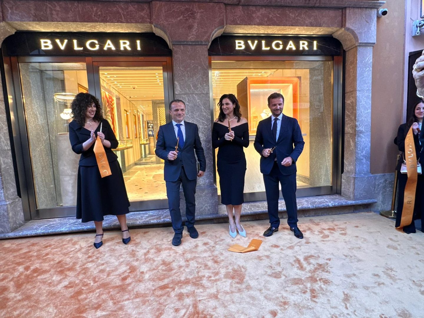 A fare gli onori di casa, per la cerimonia del taglio del nastro, Renato Munafò, General Manager Bvlgari, insieme a Cateno De Luca, Sindaco di Taormina, e madrina d’eccezione l’attrice Luisa Ranieri.